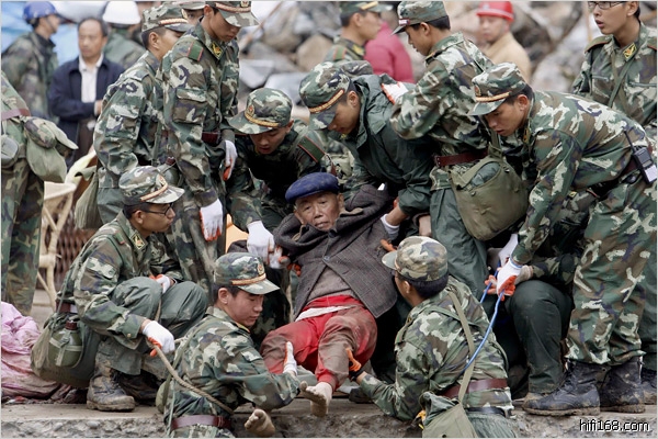 5月14日,四川北川县,士兵们从废墟中救出一个孩子。目击者称,孩子被救出3分钟后仍不幸罹难.这张太震撼了.泪(2008/5/22 23:51:13 上传)