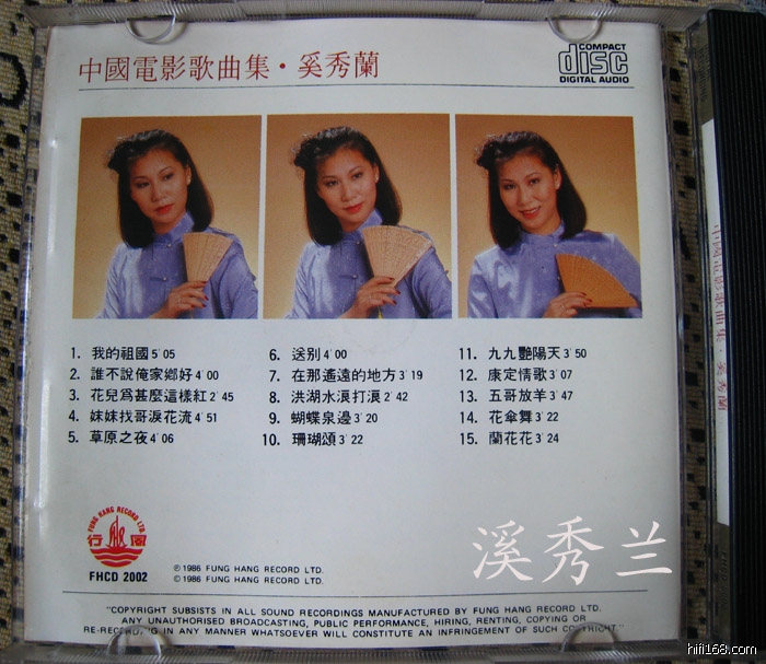 《奚秀兰 中国电影歌曲集》CD唱片,风行唱片有限公司出品,1986年, 编号:FHCD 2002