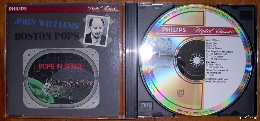 "提供的照片,此为老版的PHILIPS"金线版"系列,JHON WILLIAMS指挥美国波士顿流行交响乐团的作品,西德首版碟的封面和CD.