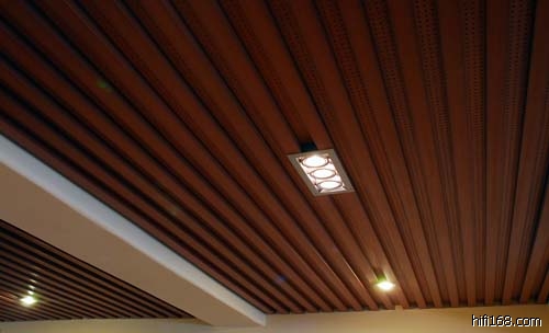 赛迪声源音响行里面别有洞天,小径通幽、绿树红花颇有一番情趣!连作这里面的鱼儿都会很幸福,可以一面畅游、一面享受高雅的音乐!听音室的装修很考究,既尽量贴近家居式环境的设计,又完全基于再现高保真声音的考量。整片天花板的高度都是不一样的,木制顶棚里面还装满了泡沫扩散板。