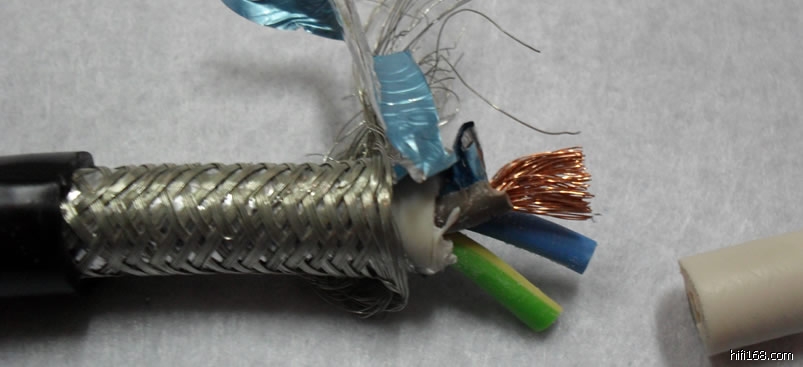 原装英国QED电源线散线,线的屏蔽很好,外层是浓密金属编制网,里面还有一层金属箔,3支导体采用多股的5N的OFC铜,外面包裹白色类似海绵的填充物,材料的纯度比较高,线身柔软。由于采用的良好的屏蔽和高纯度的OFC铜,声音甜美细腻,背景宁静,解析力层次感不错。