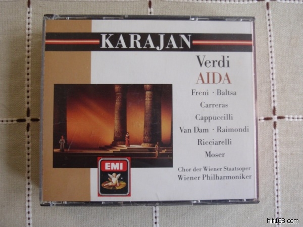 但是90年代后重新数码化的版本(如图)是有问题的。这一版《阿依达》比初版的音量会大而亮,但是在最高潮的凯旋合唱,高频区明显饱和失真。事实上,同期重新数字化的同一“RCA Opera Treasure”系列的歌剧都把音量调大了,但是因此失真饱和的,似乎就是这版《阿依达》。