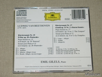 这张要好好谈谈,因为这里的贝多芬第10号钢琴奏鸣曲(1963年录音)之前PHLIPS公司好象只有日本分公司出版过,而19,20也录制于1963