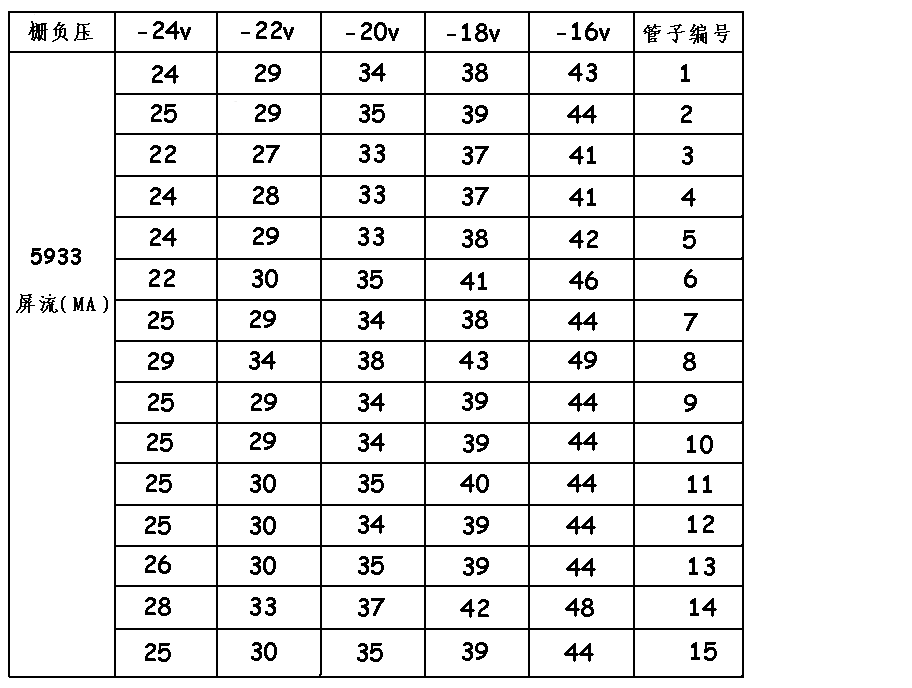 当5933屏压和帘栅压设定为250V,标准接法,分为五个段落调整栅负压如:-24V -22V -20V -18V -16V,同时记录每个段落的屏级电流,当两个管子在同样的测试条件下,用同样的方法所测得的五项屏流完全一致,可视为最佳配对!