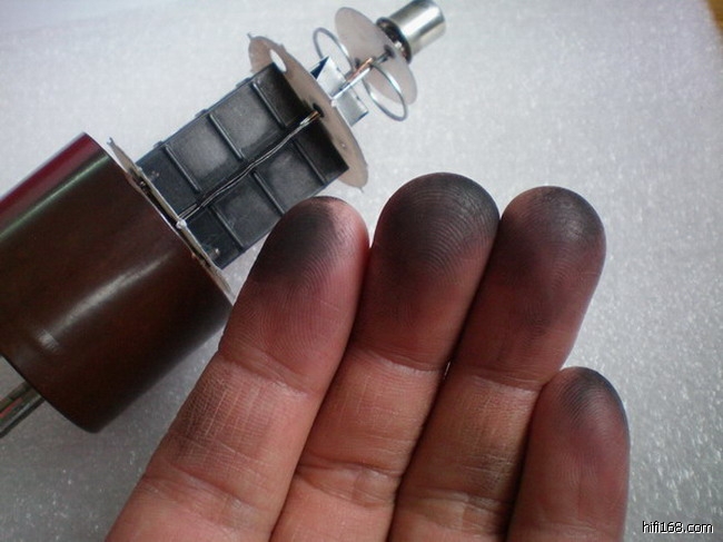屏级的黑色部分估计为石墨,很容易把手弄脏!管芯为三层云母结构!