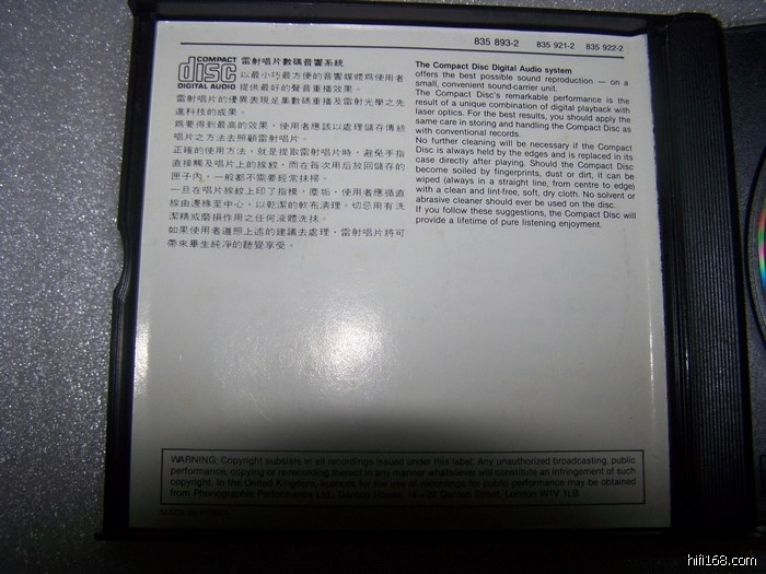 品质:碟面95新,曲目单95新,原始就无歌词,透明胶圈、无IFPI,无CASH