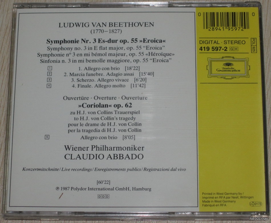 出张品好DG大黄标:阿巴多《贝3交响曲》西德无字01首版