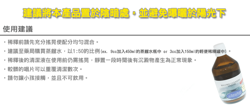 [font=Tahoma,]一瓶100毫升,可兑5升洗液。每次不要兑太多,用多少兑多少。对于普通爱好者来说,每天听一张唱片,500张也要听接近2年,绝对够用了。[/font]