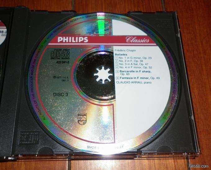 [color=#A0522D]阿劳 肖邦全集 6CD 西德PDO 全银圈 第1、2 集印刷面少量海绵印,第 3、4、5、6集有较严重海绵印 , 数据面都近新, 第2集卡齿有部分脱落,无法正常按放,第5、6集有几个透光点 ,外纸壳及内壳良好,播放正常,特价600包快 ,描述已尽量详细 完美要求者勿扰,可淘宝交易。[/color]