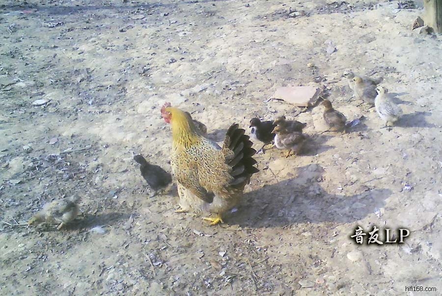祝同好们新年快乐!身体健康!心想事成!得到百色烧友彭兄的热情邀请很久啦,于是,初三约了两位烧友一行三人,带上我前些日子买入的新玩具景丰03音频播放器去百色,按原计划先去百色养鱼朋友的鱼塘吃土鸡,原来养鱼朋友是在田阳养鱼的,去年搬到百色养了,正好离彭兄发烧屋才三四里地更近了.先发一两张在城里少见的 母鸡带小鸡相片给同好们看下.