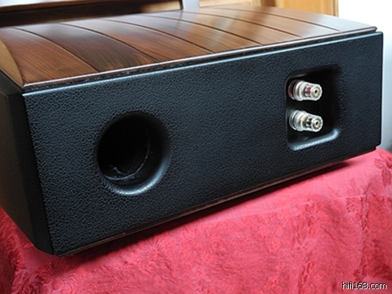音箱的外观很漂亮,两侧弧状的箱体过渡的非常圆滑而顺理其章,顶端板的渐开线倾斜式设计和皮革贴面具有强烈的视觉效应------古朴而结实有力。