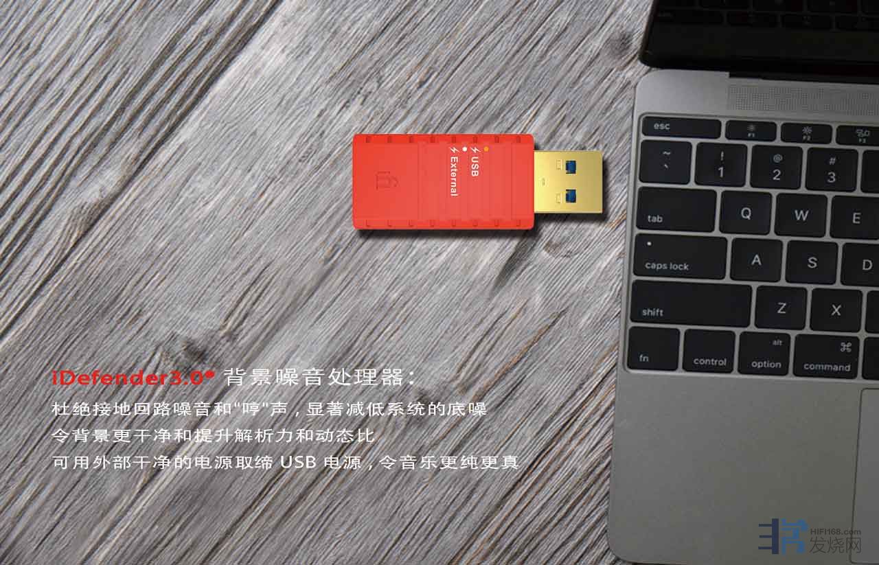 因USB是双向的,Defender3.0能解决噪音的上下游问题,打破嘈杂的地面回路,显著降低系统的本底噪声和实现动态对比,是输出的音源更缓和清晰,从PC断开USB电源用干净的外部电源取代它(可选配超低噪音的5V电源)。与此同时USB3.0端口技术-最先进和最高端的USB规格直接在电脑的USB端口使用,打破了接地回路和削减了USB电源线的燥音。