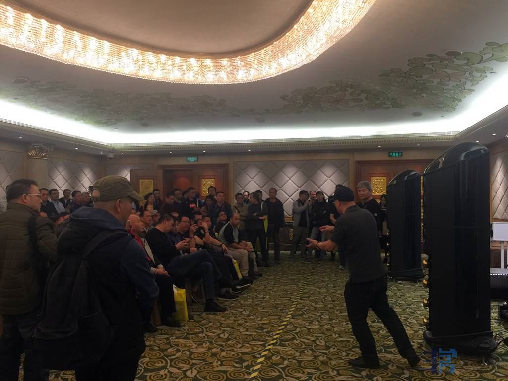 非常发烧网论坛eric版主,在中山声雅音响展房主持音乐分享节目,大家坐定定在欣赏。中山声雅音响的前后级功放CD,配置着英国ATC难推大箱,在这里可以推得个天翻地复的境界,力度兼细致,ERIC版主持音乐节目精彩不断。