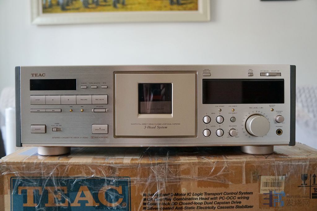 出日本TEAC卡座 经典TEAC-V7000三磁头立体声卡座,香宾色面板,220V电压,浓郁的模拟味,音色好,层次分明,收自卡坛版主老猪,成色极新(实物图),机器原汁原味(老猪版主保证机器为出厂状态,无标调过,),磁头基本无磨损,本人买来时内部清洗过一次(刚买来时播放速度有点慢,打开发现里面飞轮皮带很久没用有点脏,就拿专用清洗剂清洗),机器绝对无修无摩,无磕无碰,无暗病,现在录放效果一流,状态一流,除了四类带偏磁调整有时无法到位(一二类带轻松到位),其他功能全部正常,原包装.遥控.再送一套备用皮带,(已出)