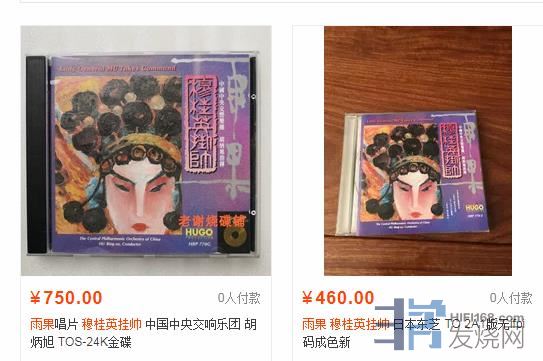 雨果录制于1992年9月的《中国管弦乐及小品系列-穆桂英挂帅》是一张非常经典的发烧唱片,其头版碟在淘宝被炒到450元,24K金碟被炒到750元。