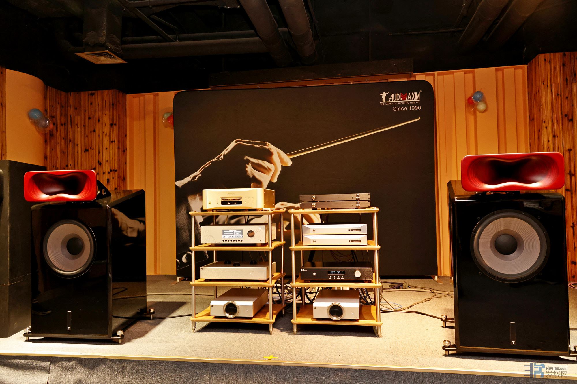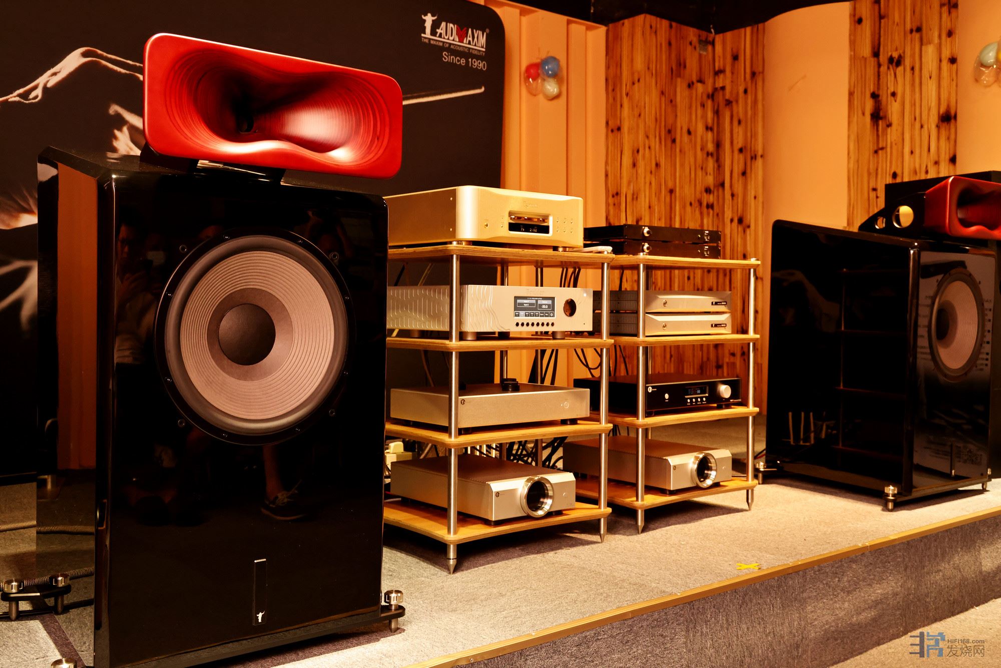 本次鉴赏会上这对SONY SEM-5S号角是从台湾的索尼哥伦比亚录音棚拆下来的,由音乐大师声学股份公司花费巨资买下的。