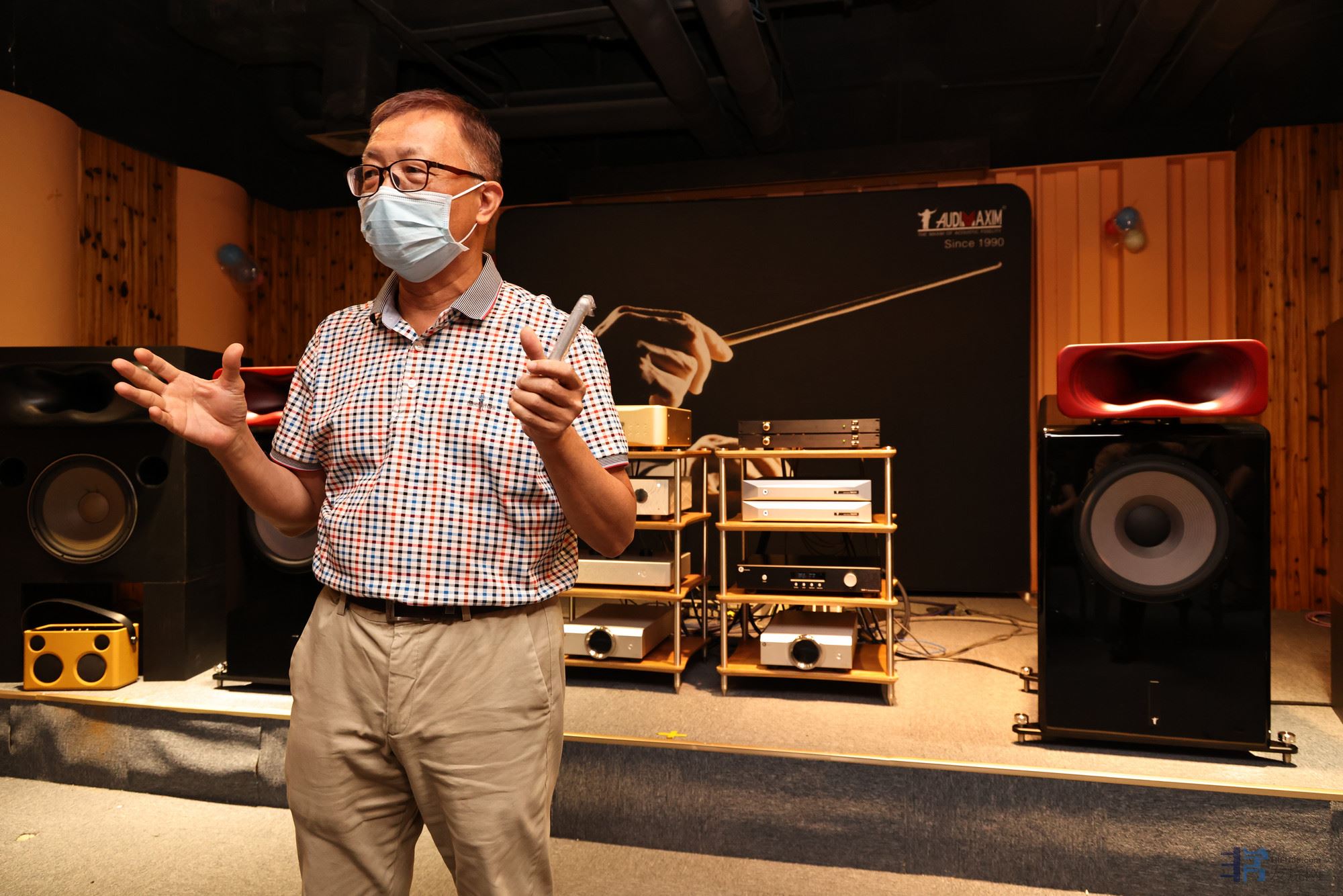 音乐大师AUDIMAXIM 巴赫号角设计师潘超杰先生介绍了这对源于索尼、致敬索尼的巴赫号角音箱研发设计过程与使用技术的差异。