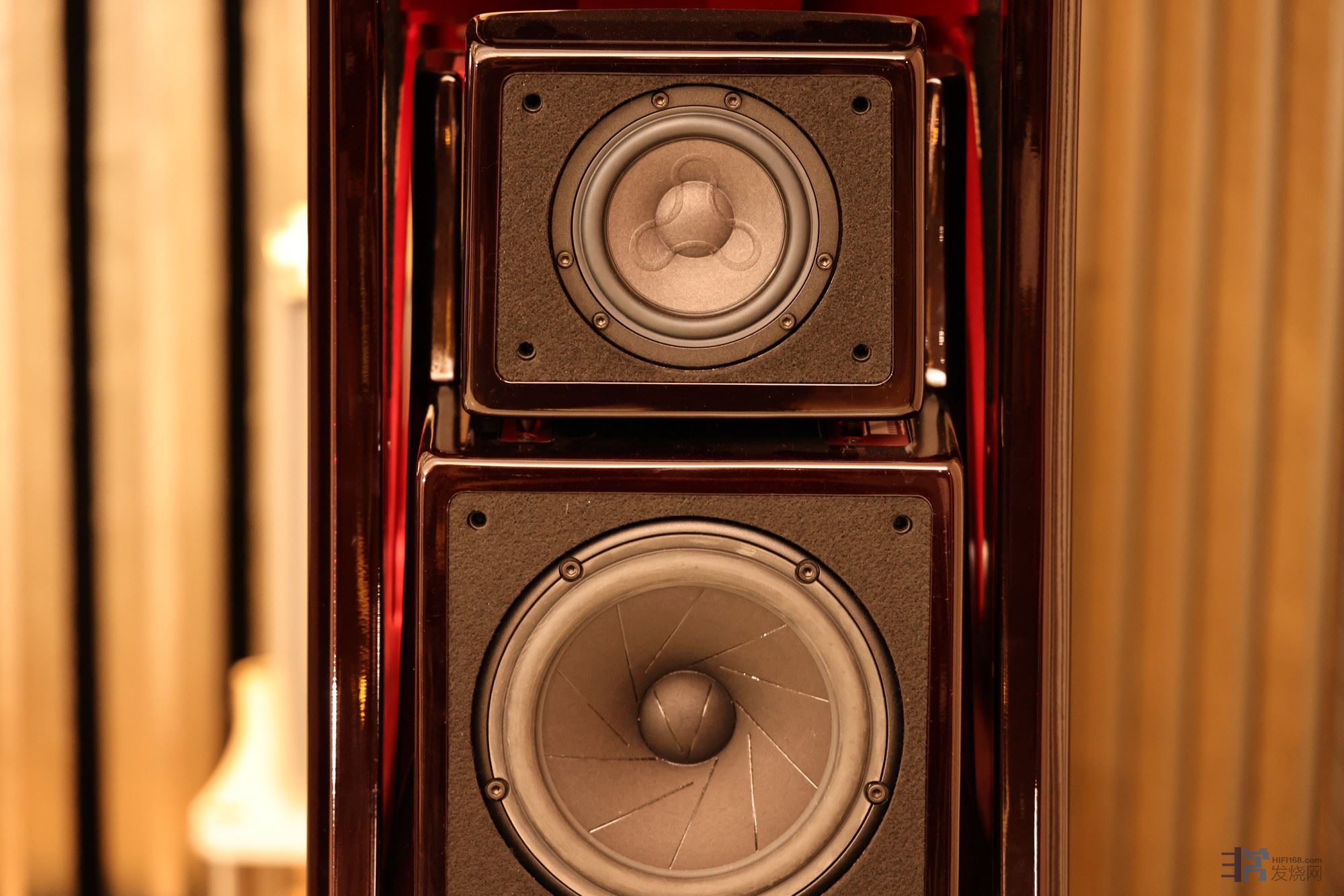 下方的低音单元分别为10.5英寸和12.5英寸两大口径的Hard Paper Pulp全新设计低音单元。 在后面还有1只高音·1英寸的Convergent Synergy MK5丝质软半球高音单元。