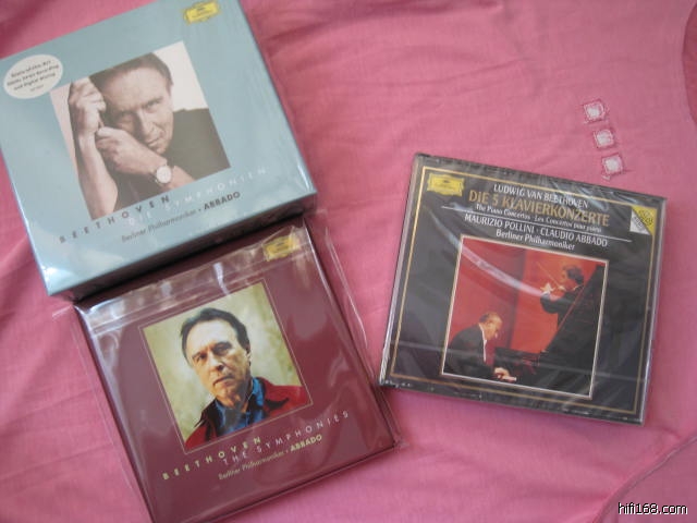 俺每天晚上再细听一张碟子,次日早上就上听感,今天晚上先听马1交响曲,“音乐的奉献”兄,你期待的SONY可能要晚点了,Sorry!不过先跟你说说,这套碟,如果你喜欢阿巴多+柏林爱乐的组合的,你一定要买。除了价格便宜以外,音乐、演奏都是一流!!有一点你可要知道的,就是,到现在为止,俺还没有买过DG阿巴多+柏林爱乐的组合不是正价的碟子,就是说,这个组合,全是正价!