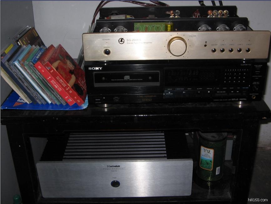 我的CD机上面是前级,CD机下面是桌面,桌面下面是后级功放....