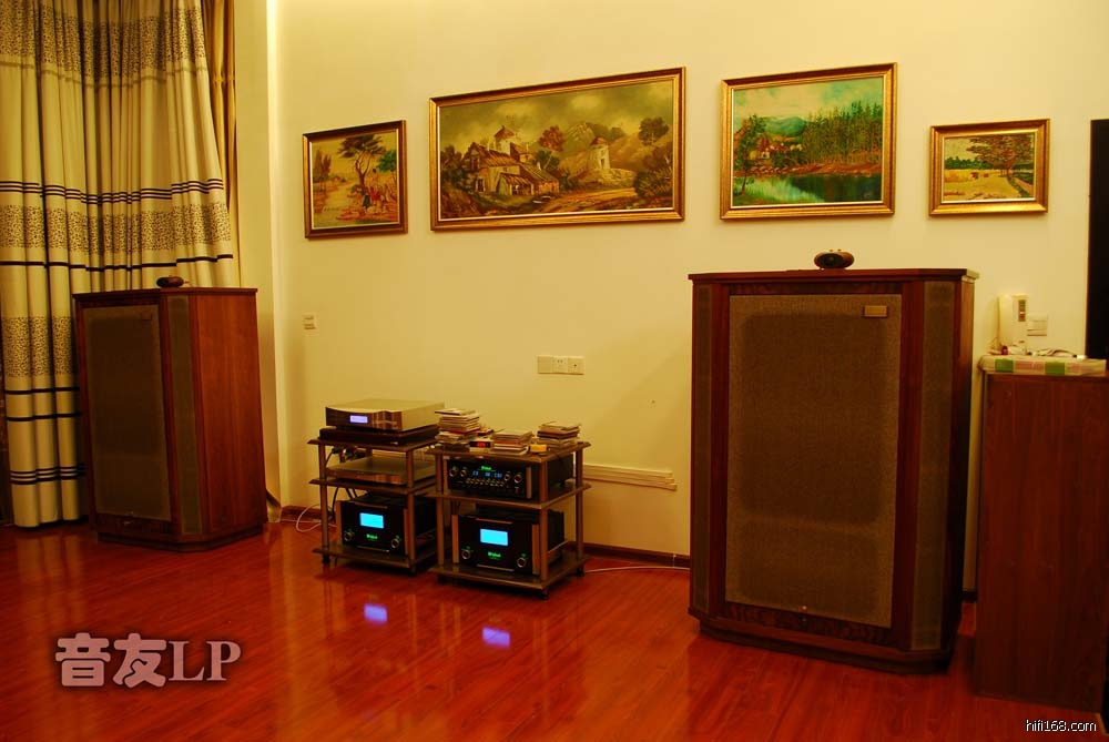 这次听音环境调整除了把AV系统搬到楼上独立AV室,客厅还是做Hi–Fi用,我粗看了一下环境两个音箱之间的投影银幕位置换成了几幅油画,座听音沙发后墙增加了一个大书架有些吸音作用吧,CD机、功放还是原来的没有变,感觉音场背景干净些,音场宽度合适,深度还是差少少些,我想两个音箱之间的距离宽可能音箱的角度偏向内多些深度可能会好些吧.不过音色还是很好的。