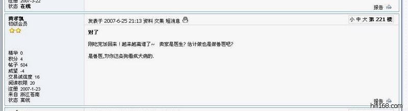 不過如果我說只是單單為大家好, 各位也不會相信. 老實說, 之前確實在網上與此黃某交易過, 也有過不愉快的經驗, 此黃某確實是胡說8道, 而且確實是在騙人, 不過我與他那事已經過去, 不提也罷.