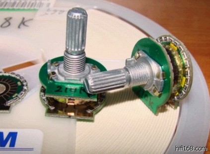 用1%贴片电阻组装的简易级进电位器21档。30元/个。推广期20元/个到9月25日(中秋节)晚12点.手工配对每声道和每档误差在千分之一以下的80元/个。目前有双联210K,100.6K两种。1%的贴片电阻上面的数字是4位,5%的是3位。本电位器没有档位定位,同步已经调到最佳状态使用效果很好,先通后断调节无噪音。中间那个用1/8W电阻焊的电路板是用手工制作的在我的机机上已经服役超过10年。现在有了更好的就换下来了。现在的电路板是镀耐磨金,用双面板另一面作屏蔽。右下的是普通16型碳膜电位器。接线方法:柄向自己出线平口向下从左到右1,2,3.1接地,2输出,3输入. 运费:珠三角内快递10元,珠三角外广东省内快递15元,广东省外一般走邮局10元。深圳的朋友可以相约在星期天下午3到6点到华强北华强电子世界门口北边报刊亭旁边的联昊通快递收货点当面提货。工行9558804000123447365,农行1037897111008438865。户名:冯荣业。13058101481。0755-25667819更详细请移步这里:http://www.tubebbs.com/thread-46121-1-1.html