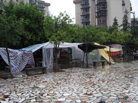 这时,我的老婆和岳母这时也取聚了过来,我老婆在地震来临时刚下到宿舍楼下快要到空地边,她还以为哪里在施工车辆在倒什么装载物,一直纳闷不解直到我们出来(缺乏没常识的表现!还有一个同事更可气,她感觉到剧烈晃动窗户在摇别人也在光着身子跑她居然还打开门问别人在做啥!)