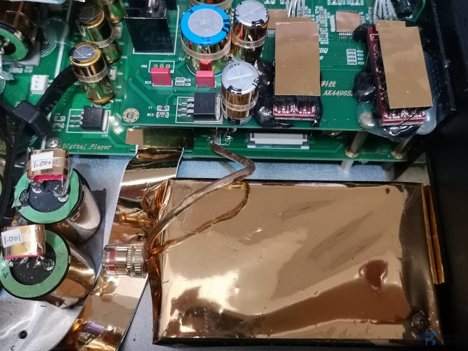 对于图中采用黄金镀膜大魔的数字音乐播放机,各位DIY同好又能否互动一下试试指出各种魔改的端倪呢?