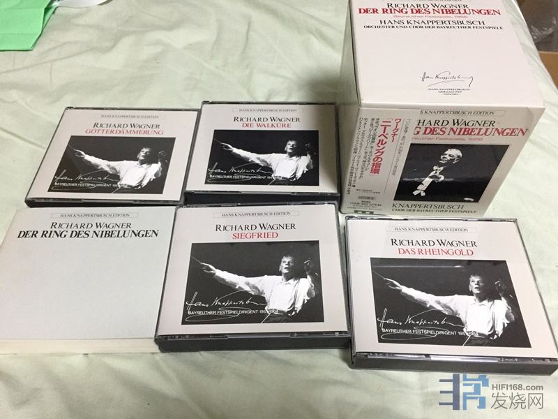 [align=left]克纳的瓦格纳指环1956年现场版本,日本seven seas公司转制,15cd近乎完美日本压盘无码,带侧标,外壳小册子也成色很好。碟子内圈上写着“not for sale", 这是因为比如碟子商家给评论家发去做评论用的碟子,或者店面的展示品等等,完全不影响质量;有些人还说因为这是首批(正式发行前)压制的所以质量可能还好些。原价34500日元和2100人民币,现在卖1050。[/align]