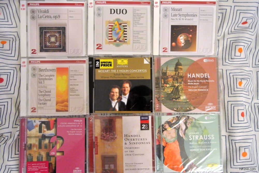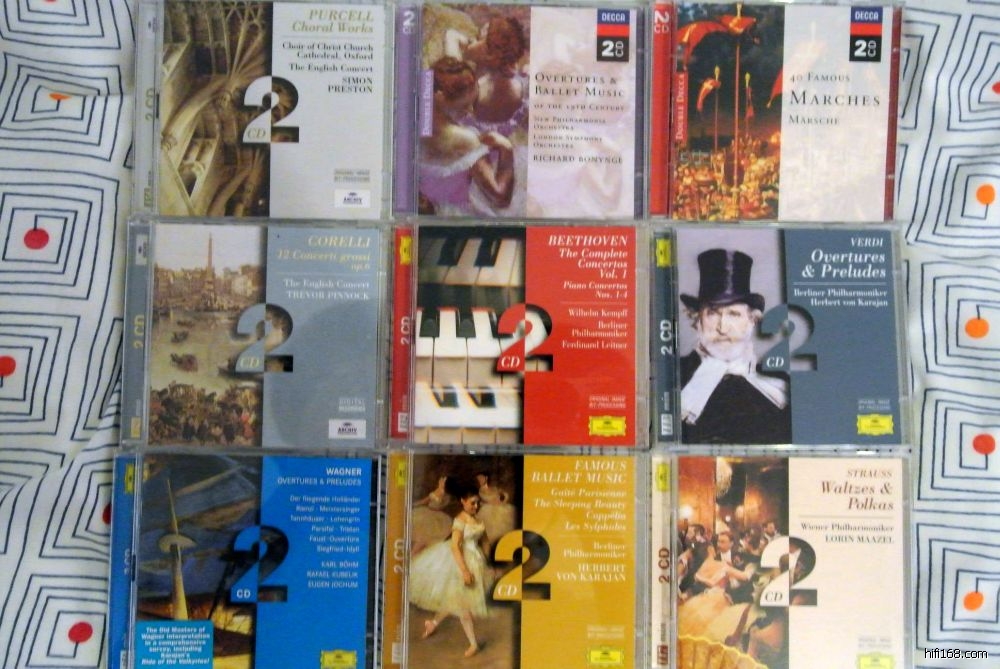 基本上都是大牌公司的高价碟,这100张(套)里,20张DG(其中包括6张Archiv),10张飞利浦,10张迪卡,20张小双张(还是前面说到的三个大牌),20张CPO以及20张HM或是DHM