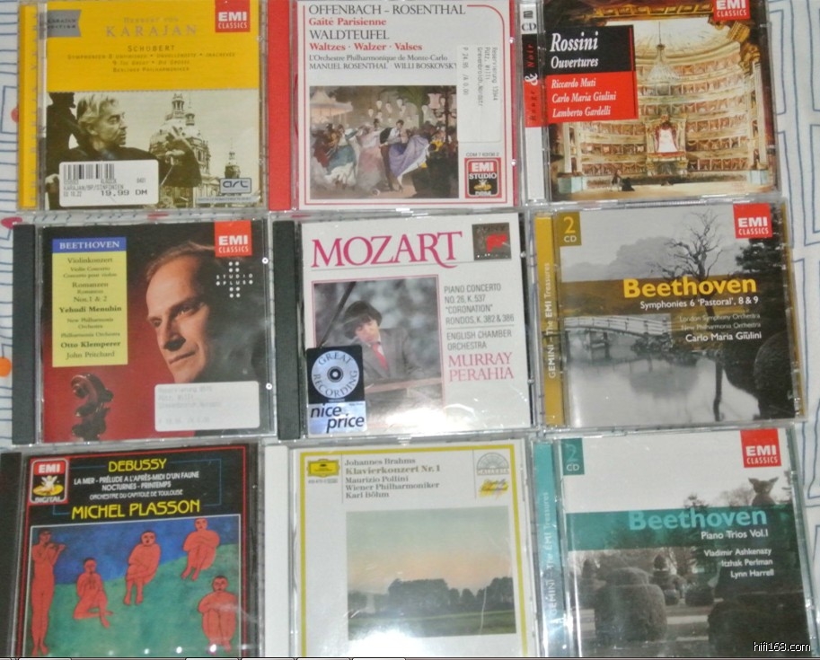 需要注意的是,这批碟的生产年份主要集中在90年代,所以那些DG,飞利浦,迪卡基本都是半银圈PMDC,很多首版碟;而CPO或是HM也基本上都是首版碟