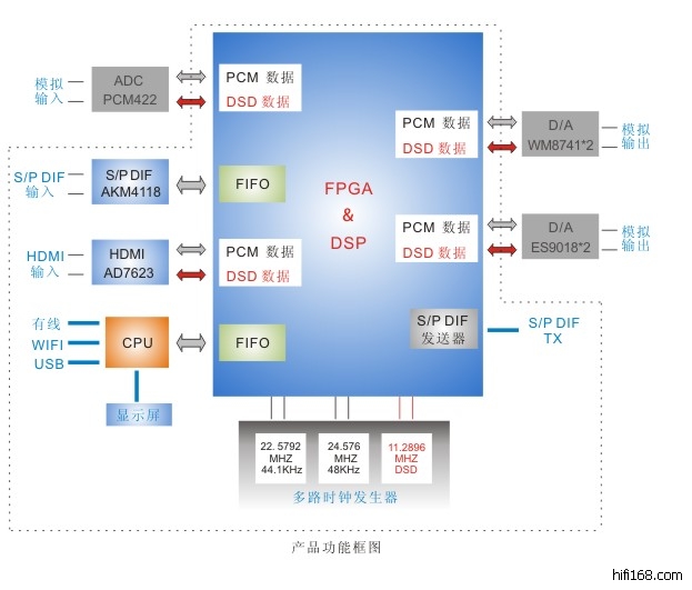UDS-1音频方面的性能完全是以Hi End标准去做的, 硬件架构是采用-- 1片FPGA+ 2个ES9018+ 3个超低噪音时钟晶振,电源是2个定制的环形变压器 +elna音频级电容 +超低噪音低温飘电阻.