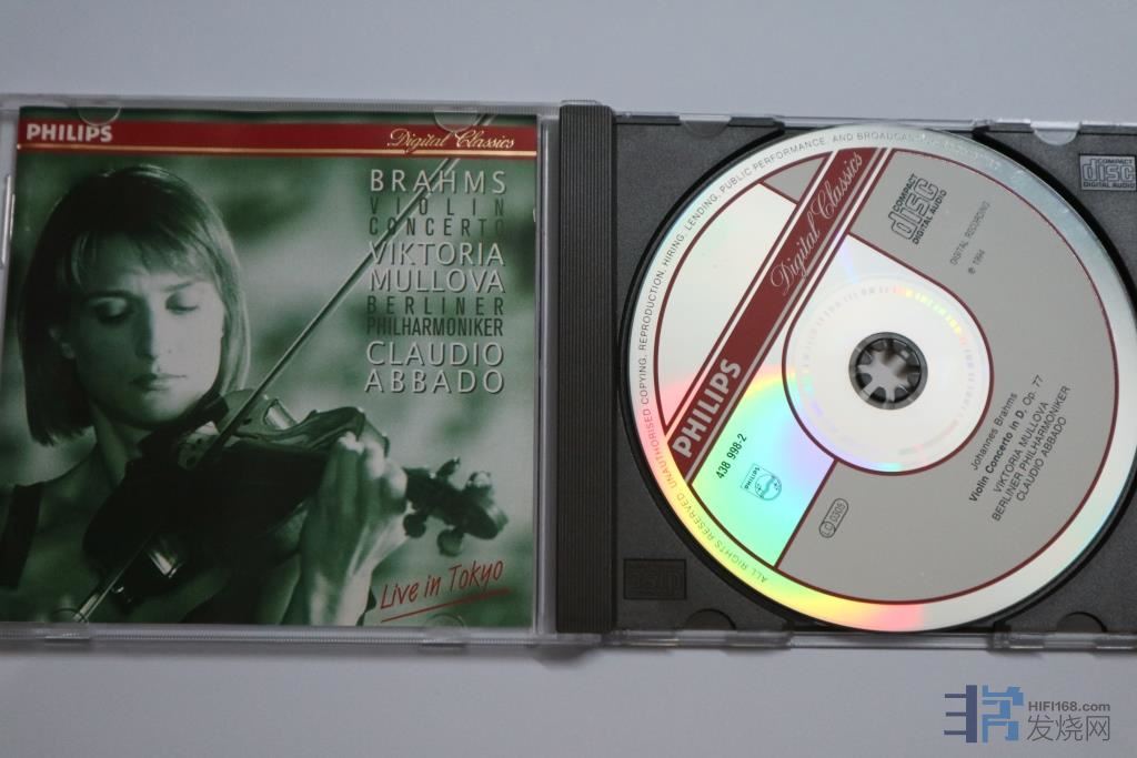 (11)勃拉姆斯小提琴协奏曲,穆洛娃独奏,阿巴多指挥柏林爱乐,德版PMDC半银圈戒子01版,印刷面近新,播放面有播放痕迹及不少细痕,低价出,90