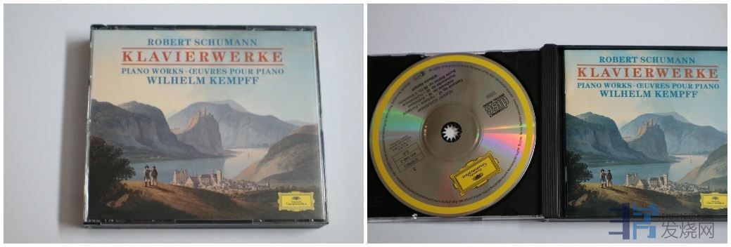 (42)舒曼钢琴作品集(狂欢节、儿童园地、幽默曲、奏鸣曲等),肯普夫独奏,4CD德版满银圈(3张)、半银圈(1张)混装01版,4CD正反面均有少量细痕,230