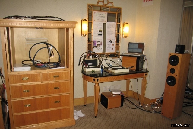 五楼 508 则是展出了一套声音相当好的PC HI-FI 系统。观其玩法相当特别,用了 苹果电脑 +  USB audio解码 + 网络硬盘 +交换机 + 路由器组成音源。。。。