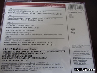 [size=3]1.philips哈斯基尔演奏的协奏曲 4CD 购于淘宝山东铺子 原描述如下:[/size] [font=Tahoma, Helvetica, Arial, 宋体, sans-serif][size=12px]4张CD略有极少近乎难辨使用浅痕,均近乎全新,均为Made in Germany,全铁心,均无IFPI,均为01版[/size][/font]