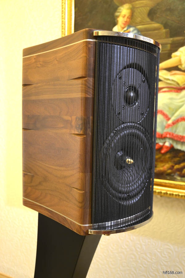 Accordo超刚性箱体由木匠大师手工打造,采用拱形实心胡桃实木结构,配合铝镁合金加强障板支架,既可以巩固箱体、也能对谐振获得最佳控制,金属屏蔽特性也能减少EMI干扰,巧妙设计的前面板也让声音扩散角度更佳,成为完美的整体声学发声,让高中低音更好地覆盖整个音场。Accordo原木箱体以乐器级漆面工艺加工,外露的铝镁合金边采用了亮银边的镀铬铝工艺,让Accordo在高贵 典雅的气质中泛着丝丝前卫的感觉。Accordo灵敏度86 dB / W / m、频率响应40Hz-33KHz,阻抗4欧,体积为36 x 19 x 36 cm、脚架高74 cm,重量32公斤对