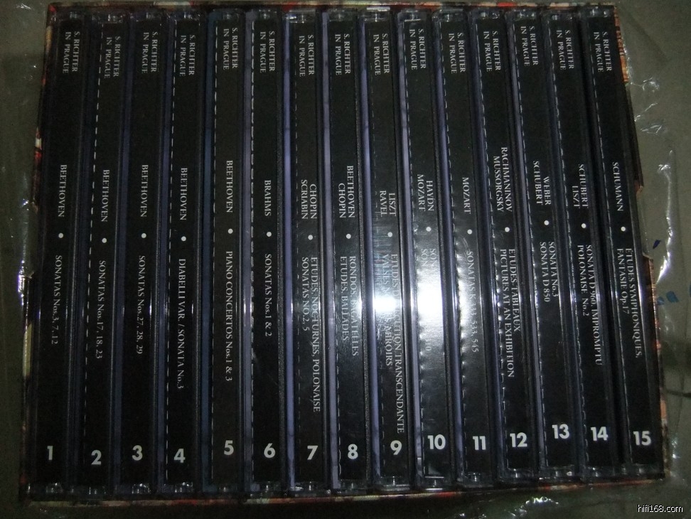 15CD, 初版带纸盒,纸盒和cd品相完好。(备注:第十五张最后有划痕,在最后一首出现几秒的挑碟,其余如新) 是李赫特迷以及古典音乐爱好者收藏的绝佳藏品。 CD较为贵重,除非快递运输造成破损,双方规定和快递费解决外,否则不接受退换货(比如听了觉得不好听, 不喜欢,等)