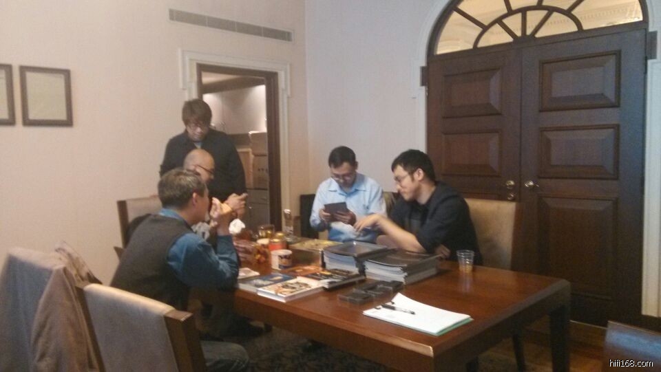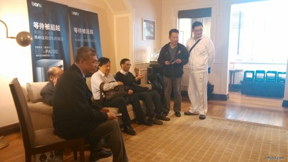 #【现场直播】2014第22届上海SIAV-巴鲁影音-梵系列-品茶聆音会# 烧友在巴鲁影音 茂名南路 锦江饭店 贵宾楼625-626号展房 观摩器材,品茶聆音,与巴鲁影音技术顾问蔡鸿仁博士展开激烈讨论,《新音响》主编赖英智老师也来到了现场。