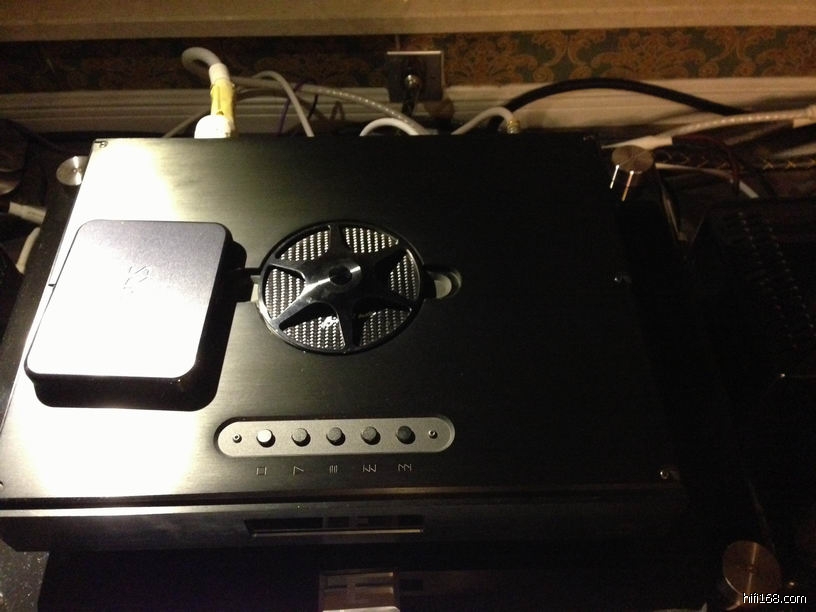 接下来就是那块上盖了,这块上盖是大有玄机的。其实雷射头的质量是都差不多的,看看每个厂给的数据就知道了,那为何那些贵到吓死人的承盘系统声音比较好? 其实最大的差异就在几何机械结构。原厂设计这块上盖,就肩负着这样的任务。他把原厂承盘的所有塑胶结构都去除了,以精密CNC切销出完美而紧密的结构,让整个震动降至最低,也让雷射机构完全因为超重量级的承座而稳定下来,更赞的是铝本身的电磁屏蔽作用让数位伺服机构动作更完美。这个设计让音质变化有如天壤之别,不过,这样做的成本真的很高啊!也让我们可以理解那些欧美厂商为何能把产品卖到这么贵,因为这真的只是为极少数人服务的加工方式。