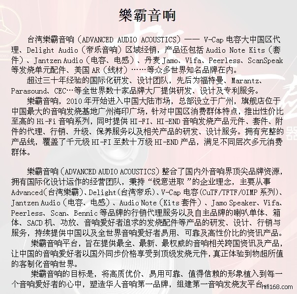 二零零四年迁址新厂房(深圳蛇口赤湾一路十号),通过内部整合及设备的充实,成为少数有能力自主开发、配套和生产高级音响器材的企业;