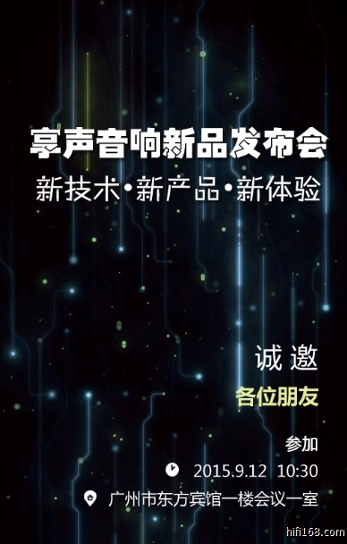 2015年广州HIFI耳机与数字音频展于9月12~13日如约开展,享声音响携带两款新品及全系列播放器产品与大家相约在东方宾馆230D展室。