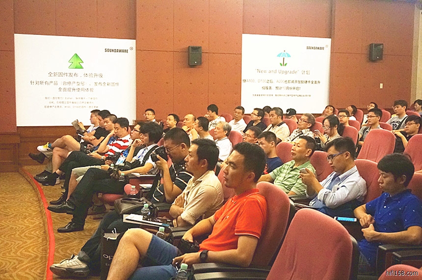 12日上午10:30,享声音响新品发布会于一楼会议一室顺利召开。发布会现场吸引了包括中关村在线、新音响杂志、HIFI168论坛、众多发烧友以及经销商朋友们参与。会场一度爆满。会上,公司创始人林先生以“新技术、新产品、新体验”为主题,对享声音响全平衡硬解DSD重放、时钟系统的应用和飞秒时钟的概念做了重点介绍,同时现场发布并演示了应用此新技术的两款新产品:全球首个采用飞秒级时钟模块的便携播放器新版Esther(M1 Pro)、全平衡原生网络母带一体播放器A280。针对新老客户关注的“New and Upgrade计划”和新固件升级也在发布会上进行了详细说明。