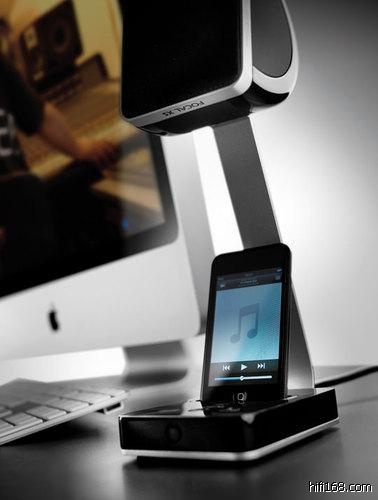 可通过底座连接IPOD、ITOUCH,附赠的连线可接IPHONE,也可以作为普通有源HIFI音箱接PC、或者作为床头音响