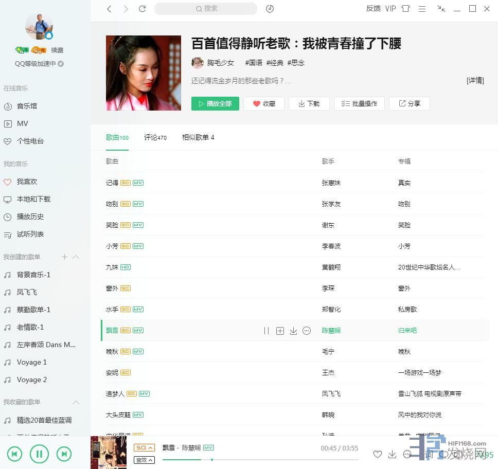 流行音乐方面,昨天看到QQ音乐解决了一大批歌手歌曲的版权问题,开始可以提供无损播放了。我是绿钻交费用户,可以在线播放SQ级格式音乐,所以我也懒得去下载了,有空就选取编辑一个播放列表,或者直接选别人编好的曲目表播放(人家已经帮你挑选好了)。