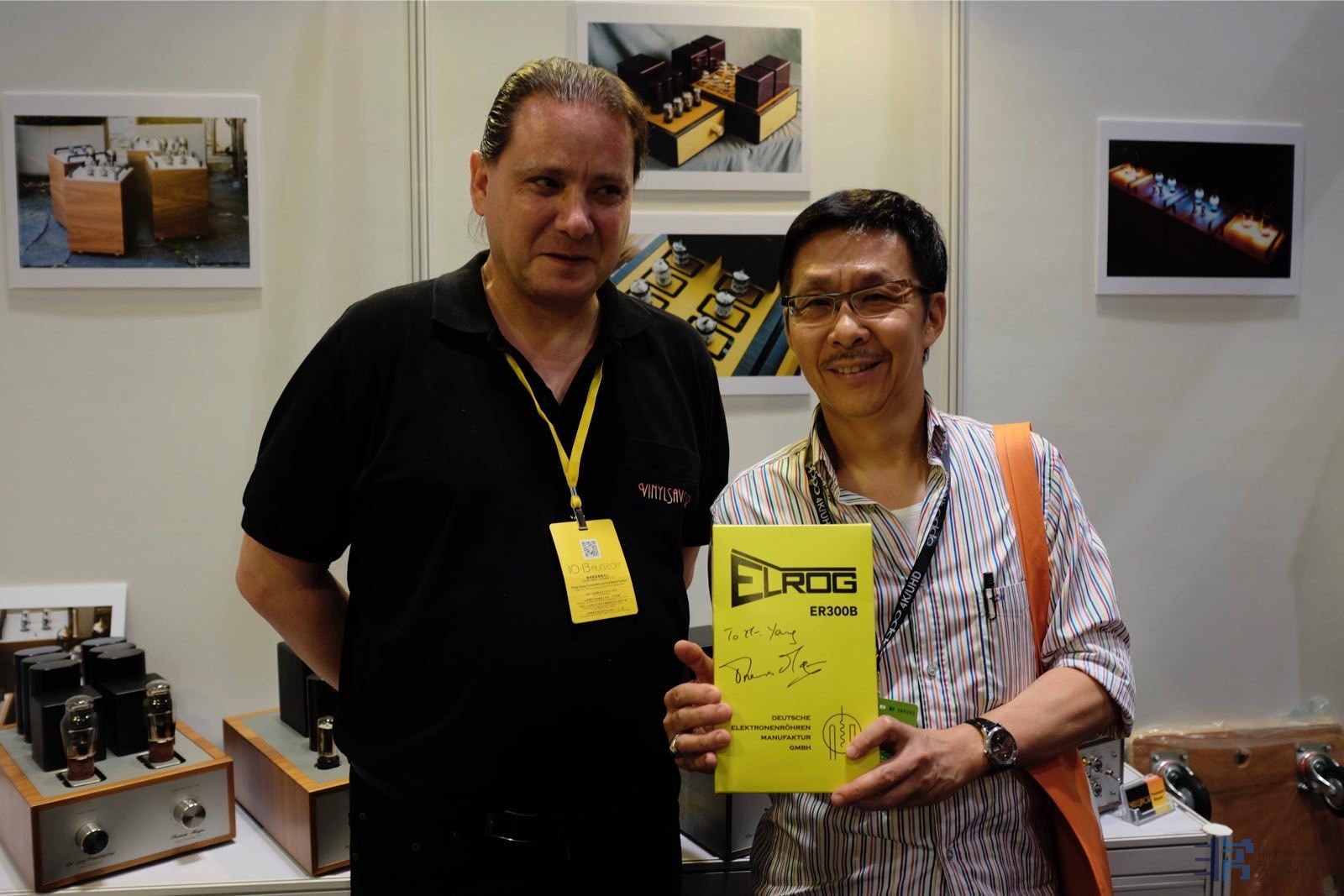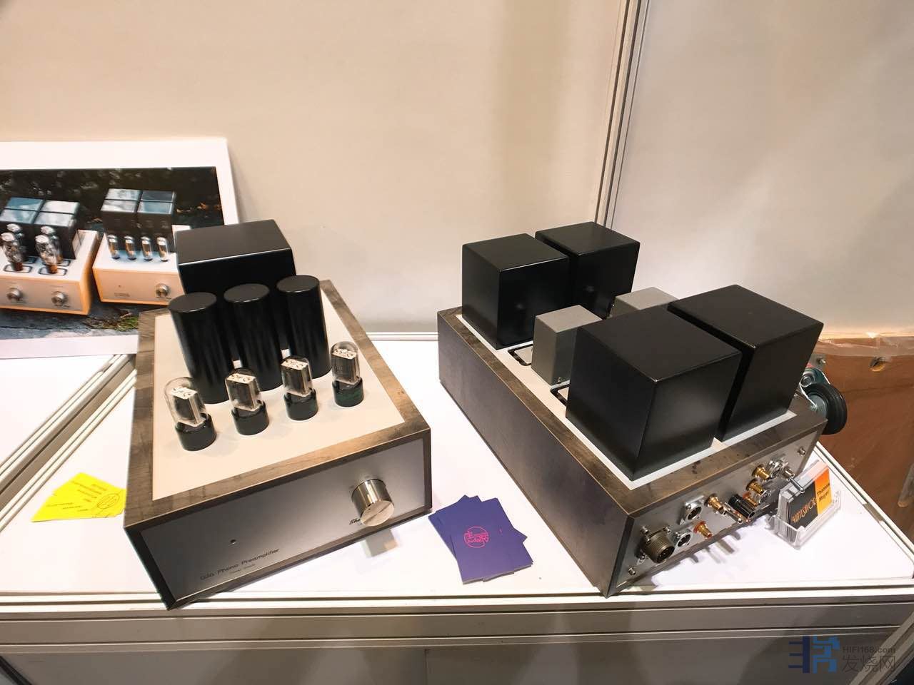 展墙上悬挂着ELROG制作过程的照片、Thomas Mayer功放的照片。