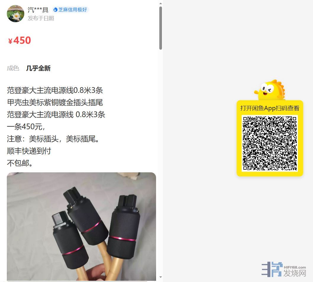 范登豪大主流电源线 0.8米 3条 450元一条