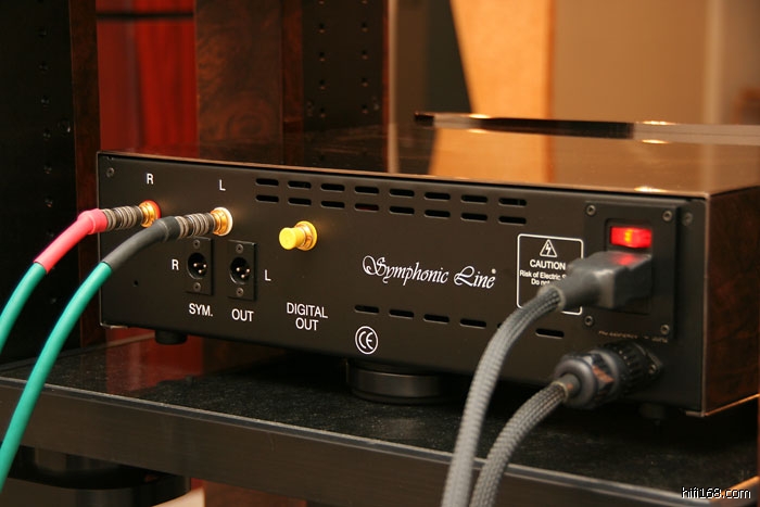 当天试听使用的德国之声(Symphonic Line )的Reference MK2 CD机,售价11万,分体电源,数码、模拟独立供电,所以有两条电源线输入。声音很有模拟味。