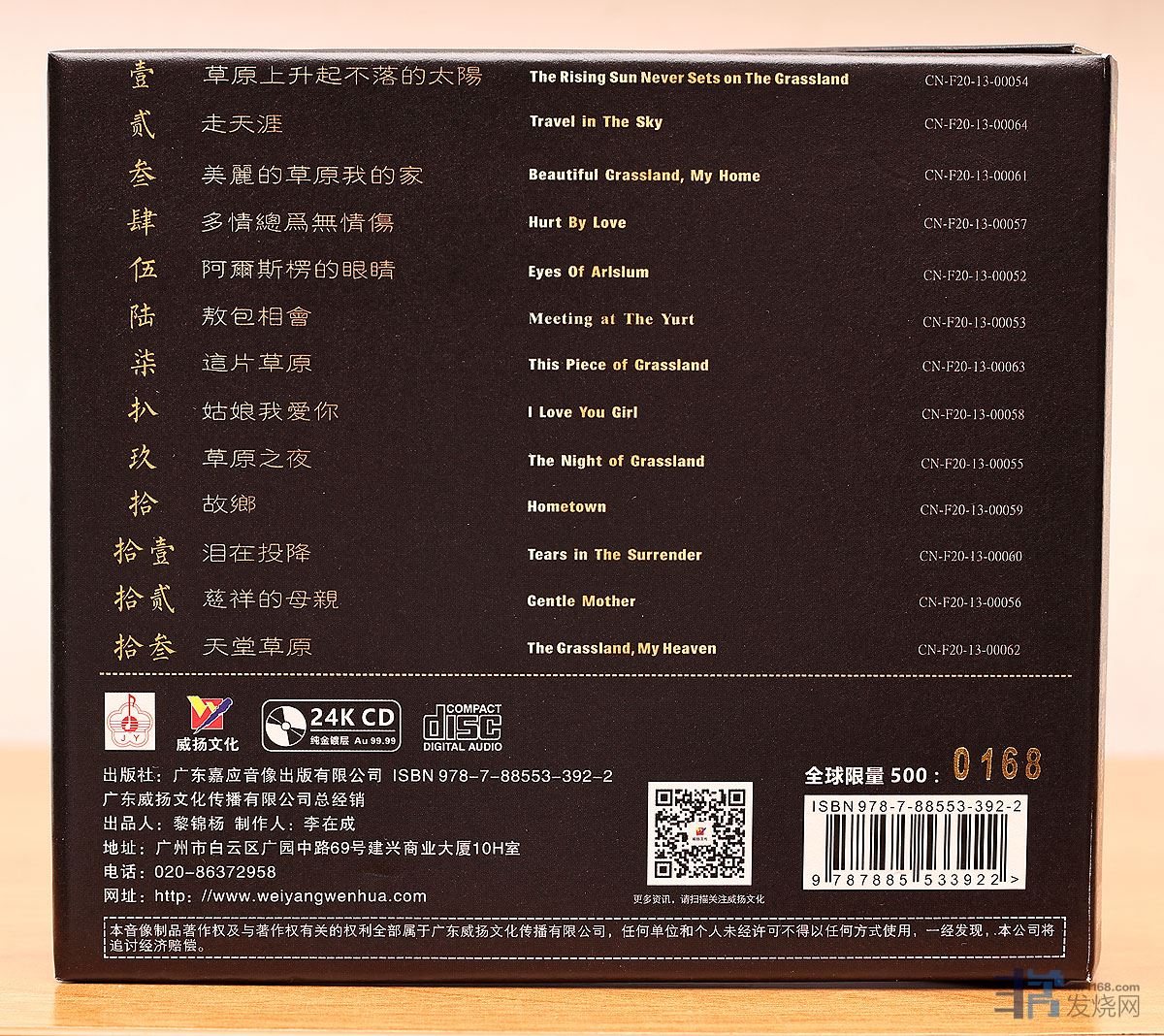 我拿着这款《金色的辉煌》到海印广场中坤音响试听,中坤有普通版本,一听我的24K版本,大家都说效果好太多了。